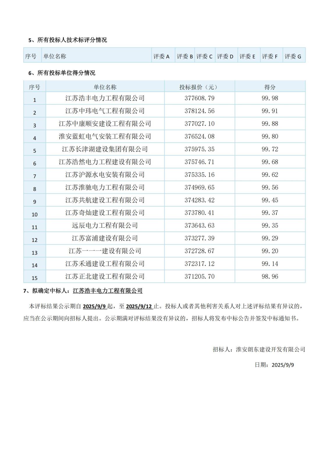 江蘇省工程建設項目評標結果公示