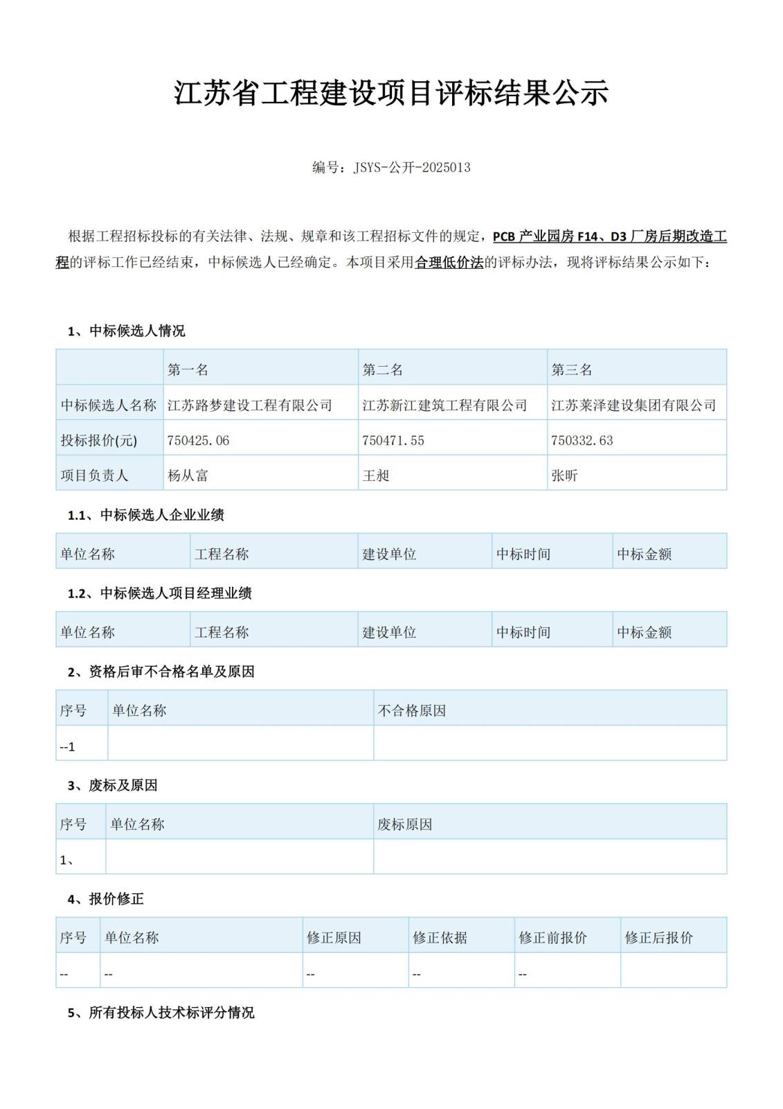 江蘇省工程建設項目評標結(jié)果公示